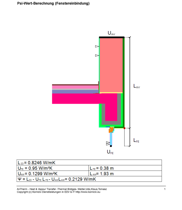 The length-related coupling coefficient of the considered construction is calculated and output data by AnTherm (see also „coupling coefficient report“).